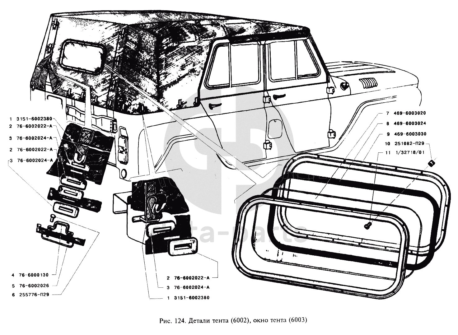 Детали тента и окно тента УАЗ 3151