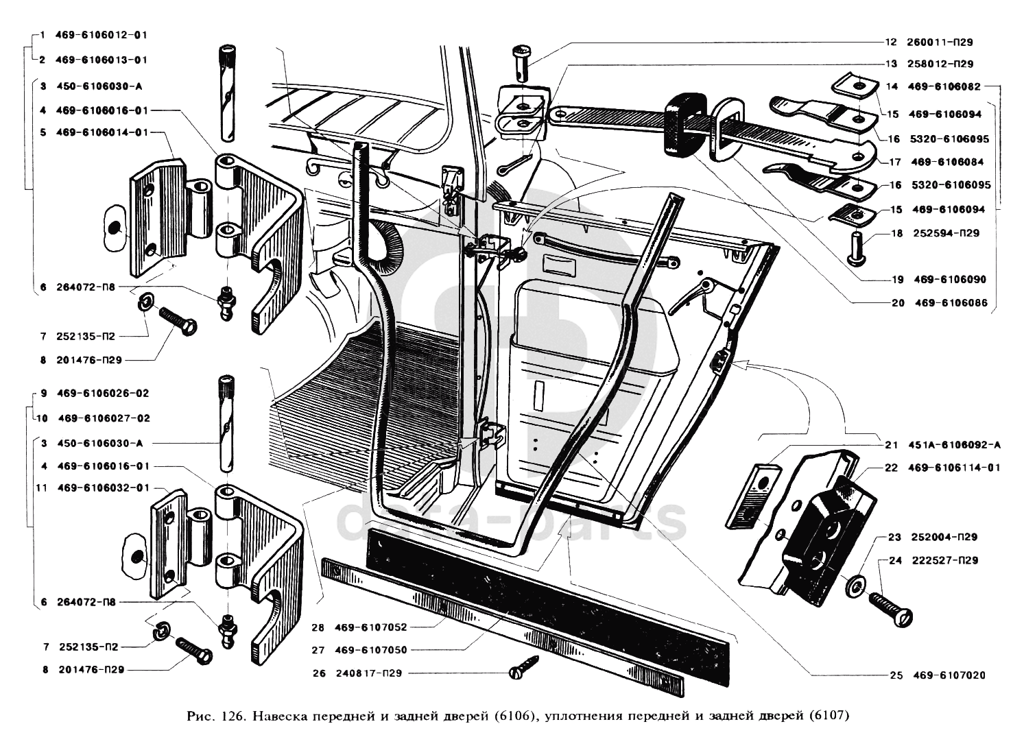Навеска передней и задней дверей, уплотнения передней и задней дверей УАЗ 3151