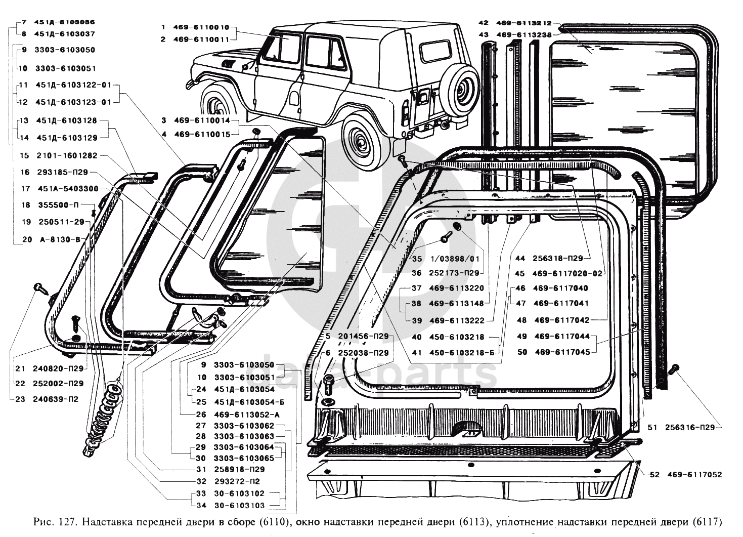 Надставка передней двери в сборе, окно надставки передней двери, уплотнение надставки передней двери УАЗ 3151