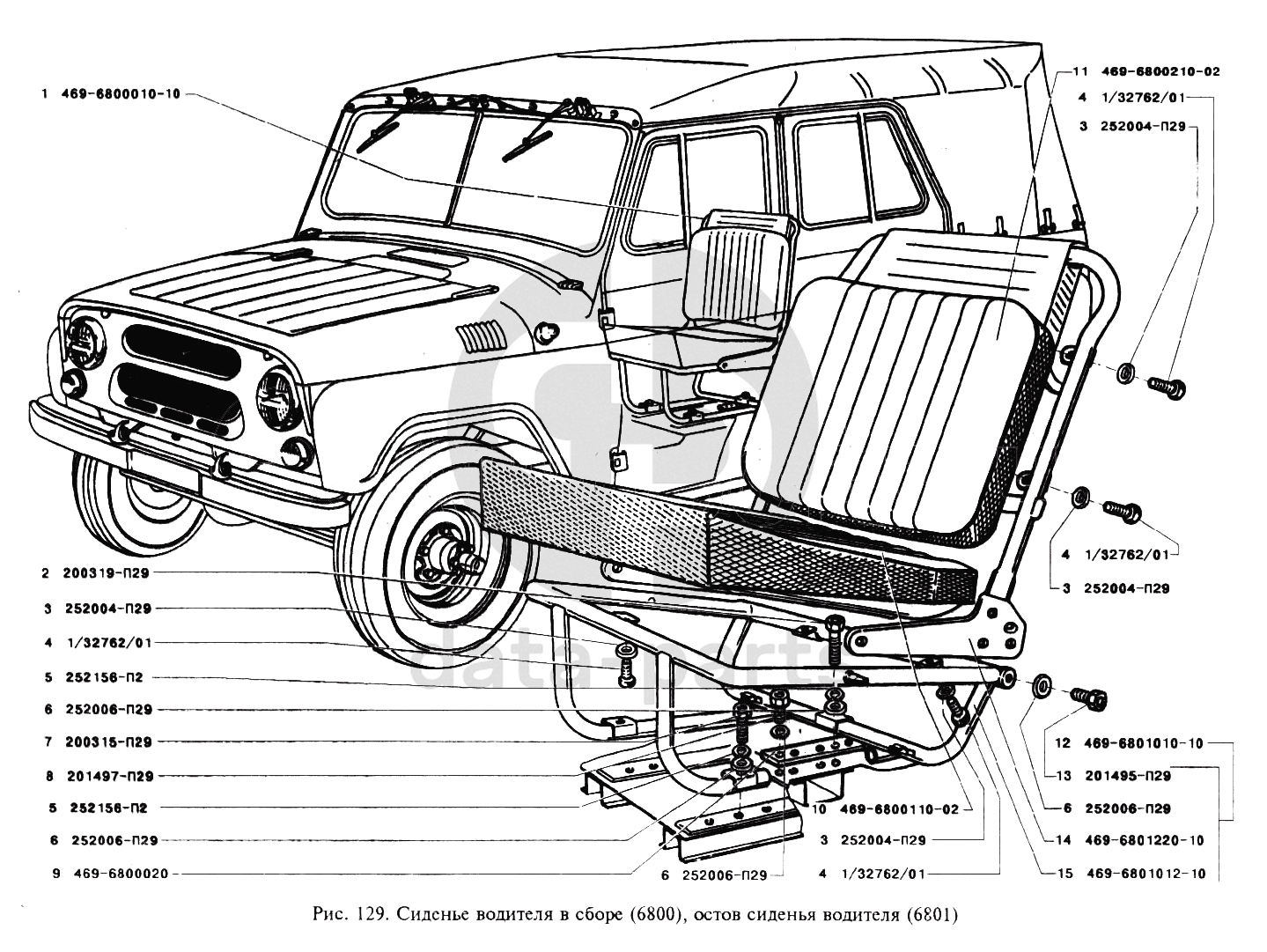 Сиденье водителя, остов сиденья водителя УАЗ 3151
