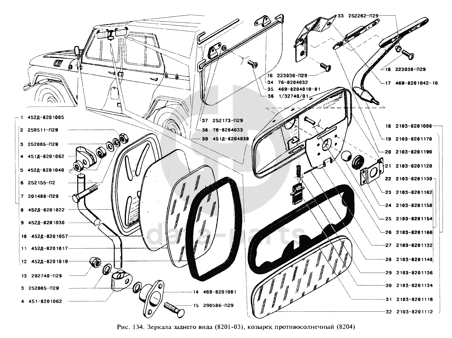 Зеркала заднего вида, козырек противосолнечный УАЗ 3151