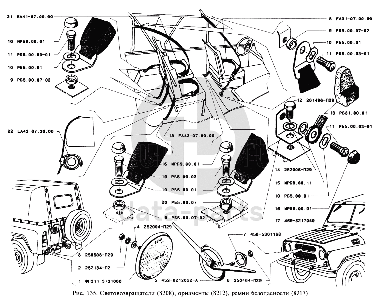 Ремни безопасности, световозвращатели, орнаменты УАЗ 3151
