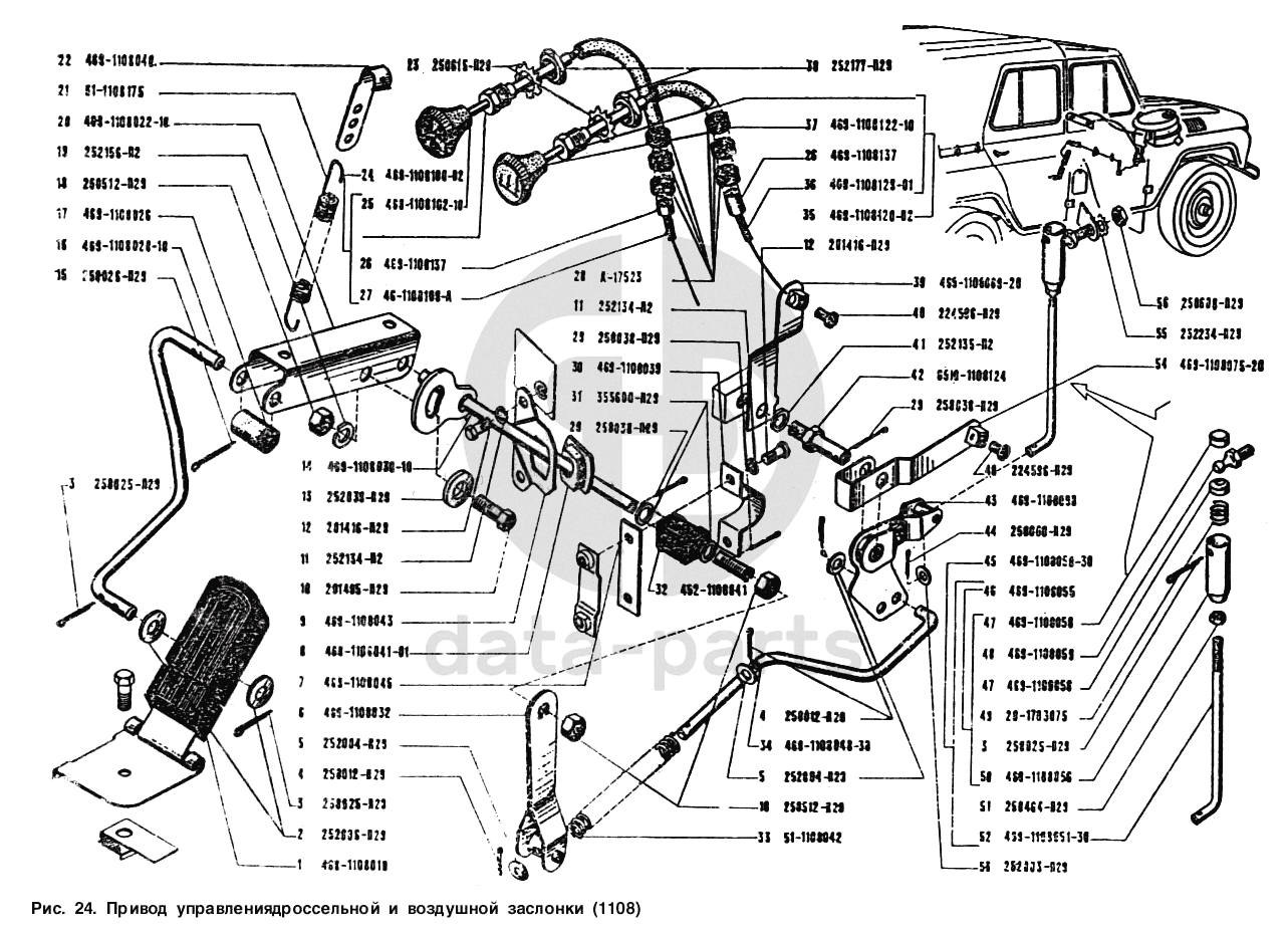 Привод управления дроссельной и воздушной заслонками УАЗ 3151