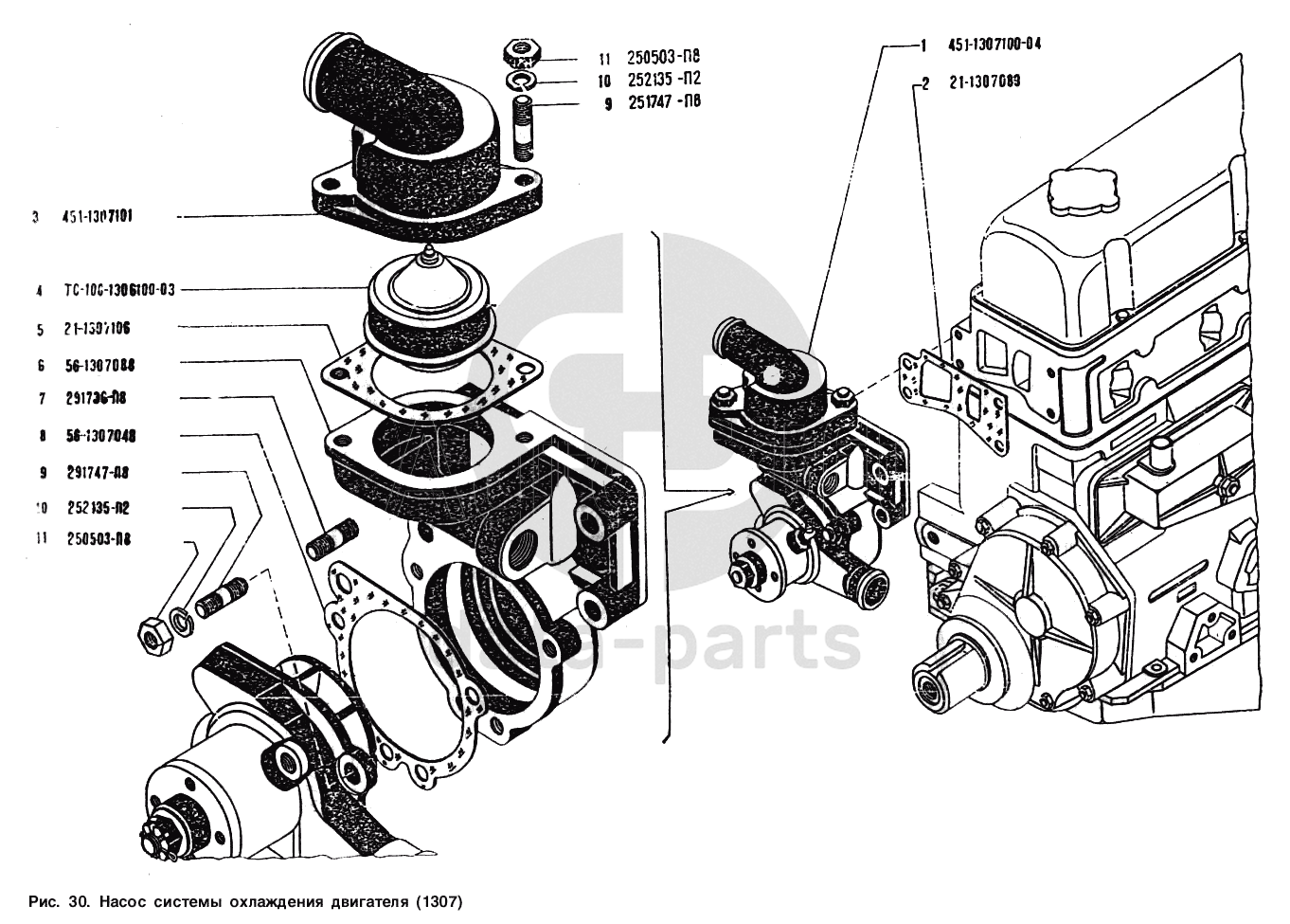 Насос с кронштейном, выпускным патрубком и термостатом в сборе