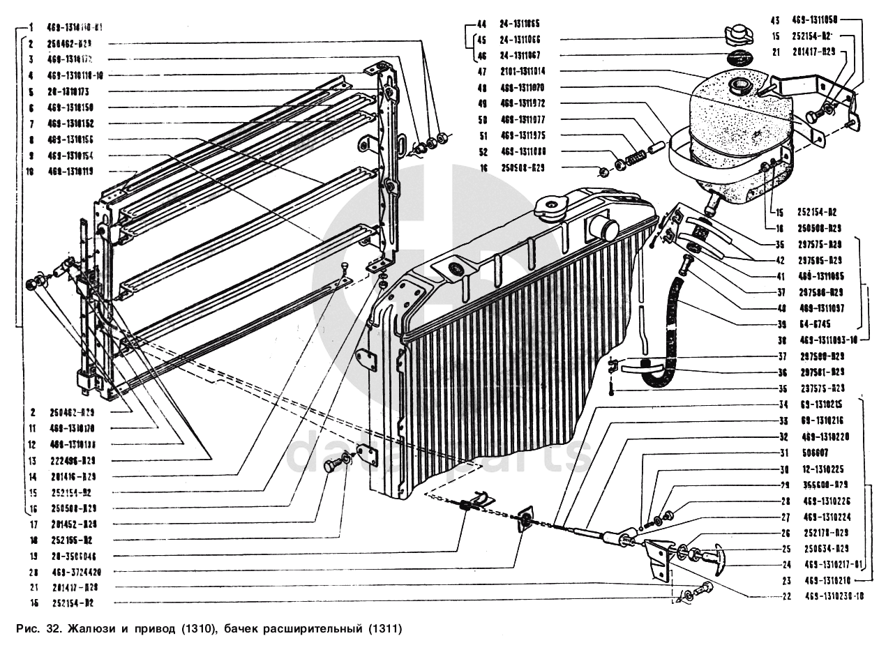 Жалюзи и привод, бачек расширительный УАЗ 3151