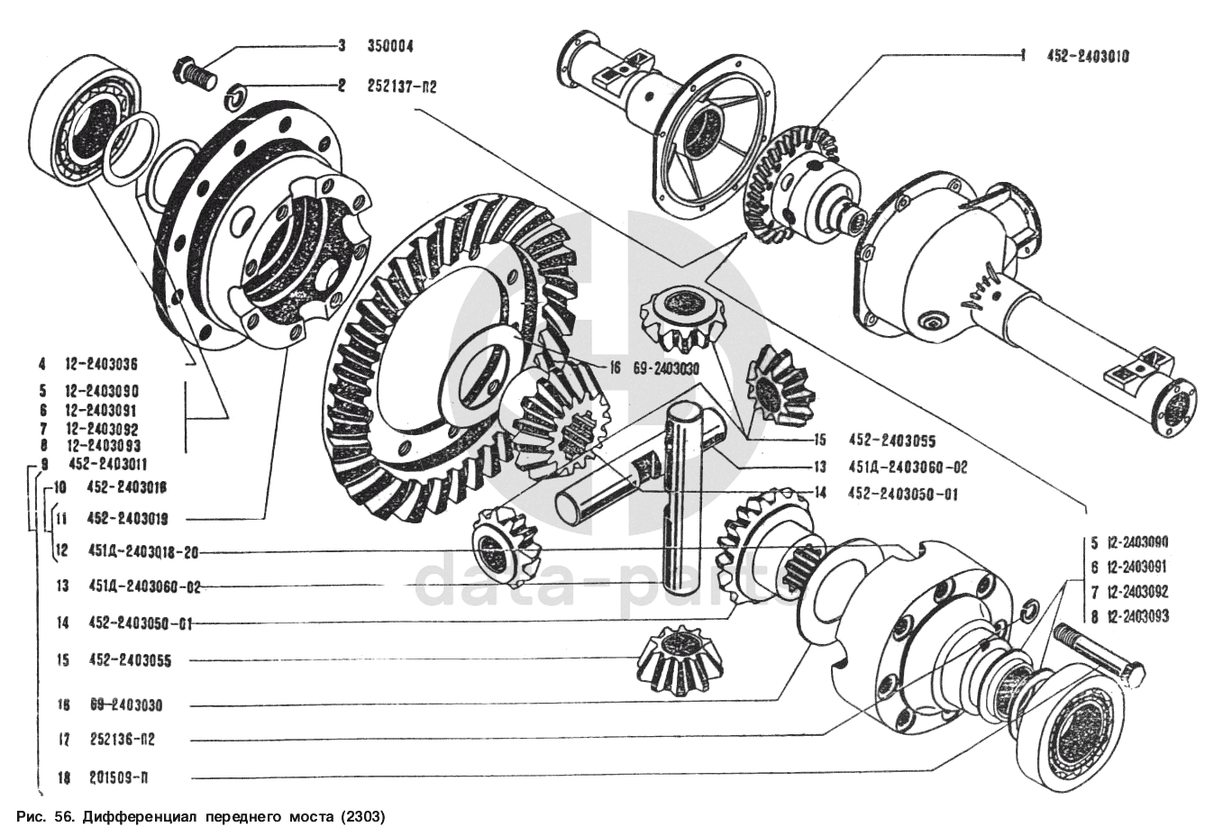 Дифференциал переднего моста с ведомой шестерней главной передачи в сборе