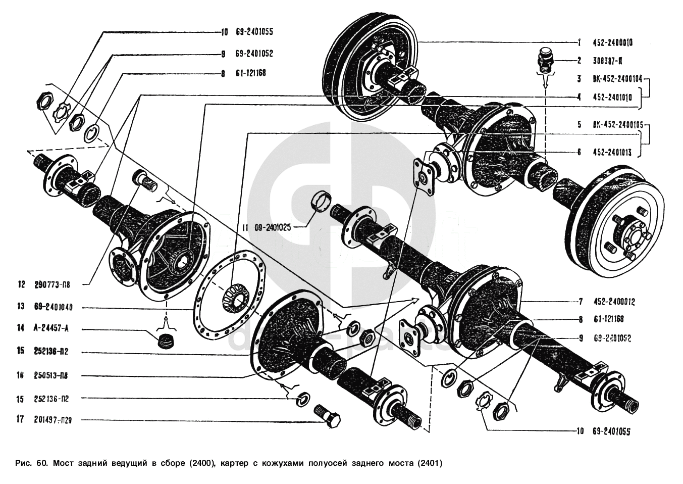 Мост задний ведущий в сборе, картер и кожухи полуосей заднего моста УАЗ 3151