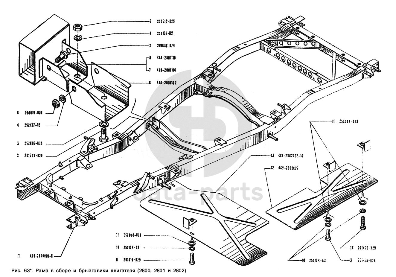 Рама и брызговики двигателя в сборе УАЗ 3151