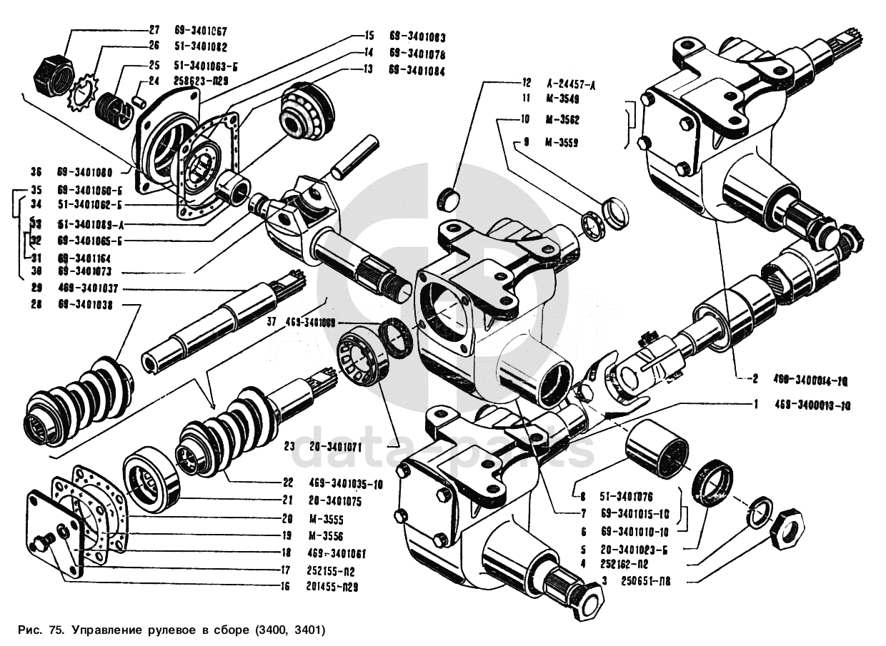 Рулевое управление без колонки, рулевого колеса и сошки в сборе