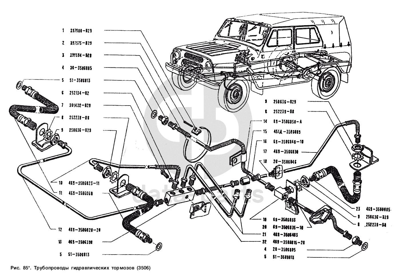 Трубопроводы гидравлических тормозов УАЗ 3151
