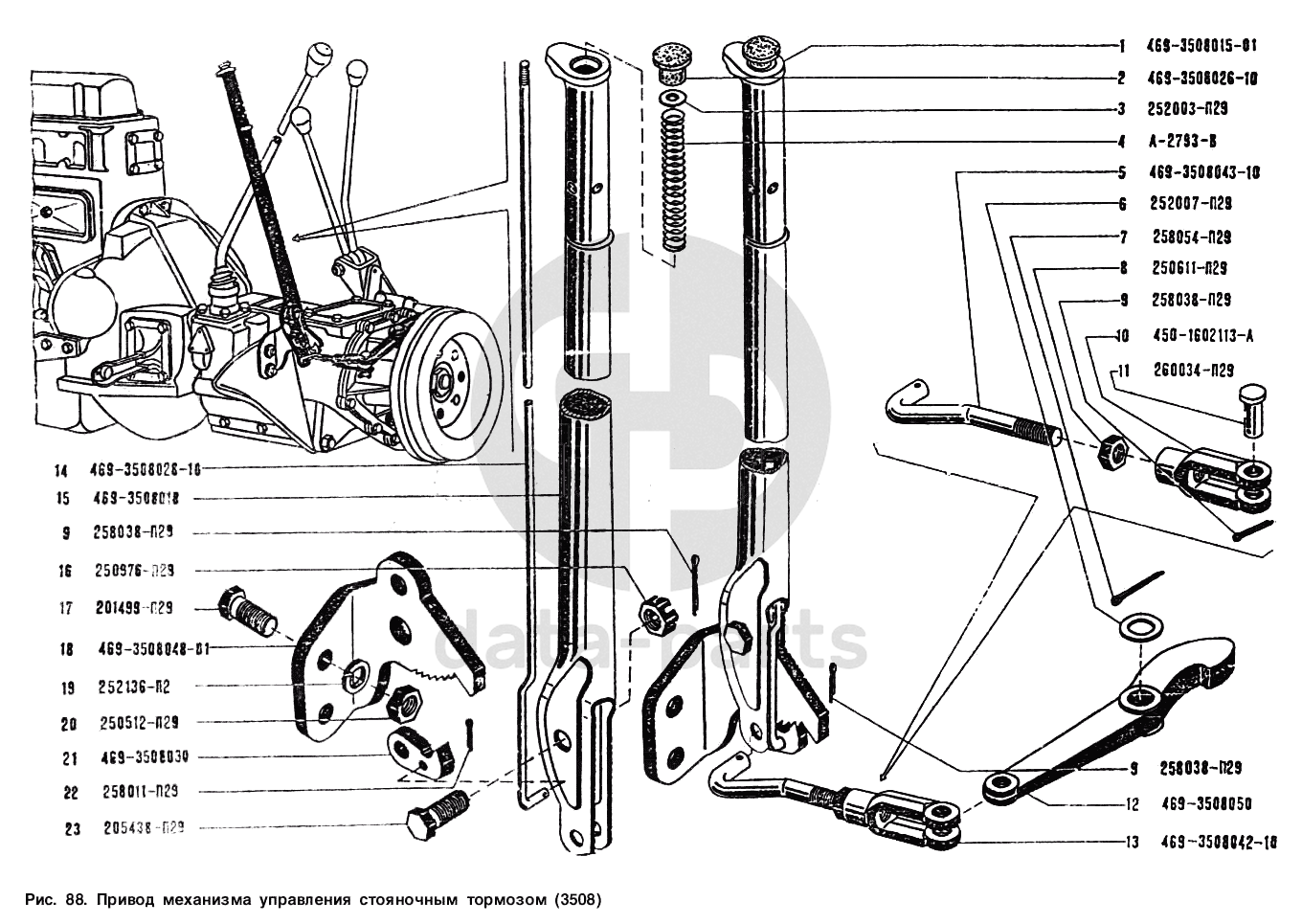 Привод механизма управления стояночным тормозом УАЗ 3151