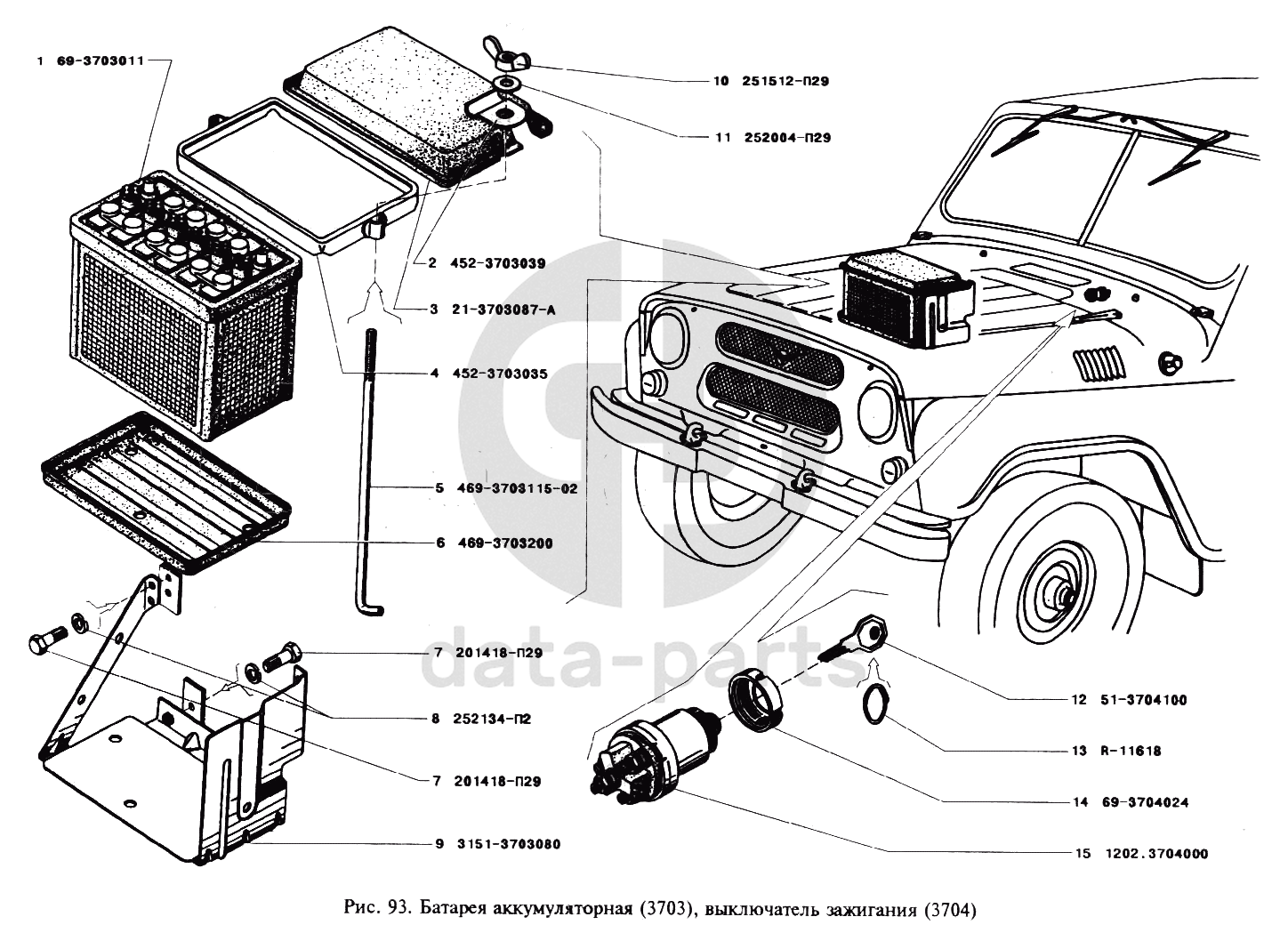 Батарея аккумуляторная и выключатель зажигания УАЗ 3151