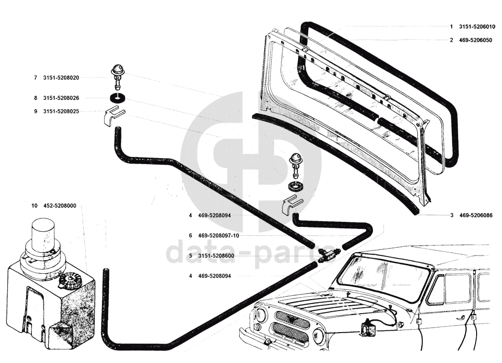 Окно ветровое, смыватель УАЗ 31512