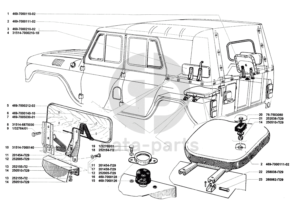 Сиденье заднее, спинка заднего сиденья УАЗ 31512