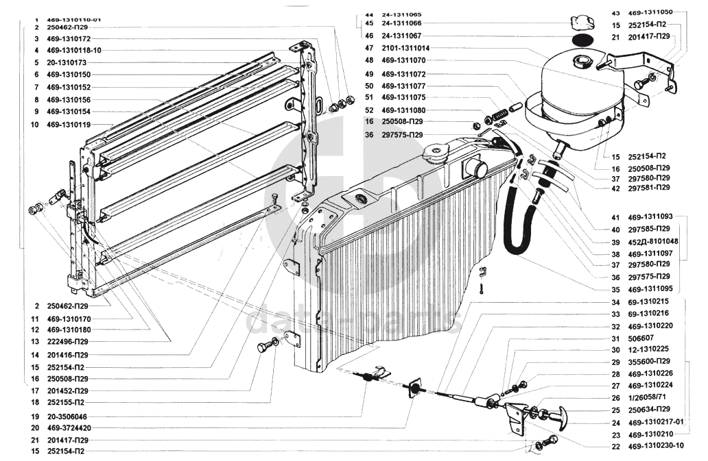 Жалюзи радиатора и привод, бачок расширительный УАЗ 31512