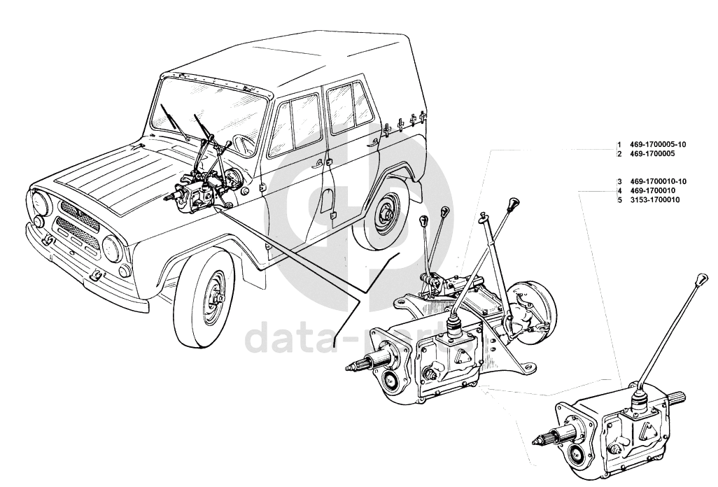 Коробка передач, раздаточная коробка и тормоз стояночный в сборе