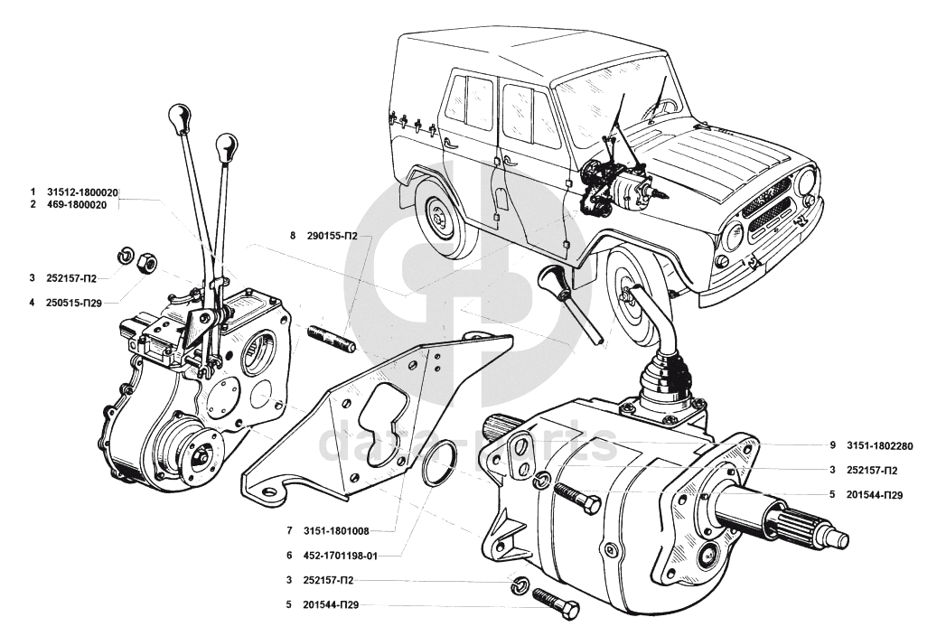 Коробка раздаточная в сборе и подвеска раздаточной коробки УАЗ 31512