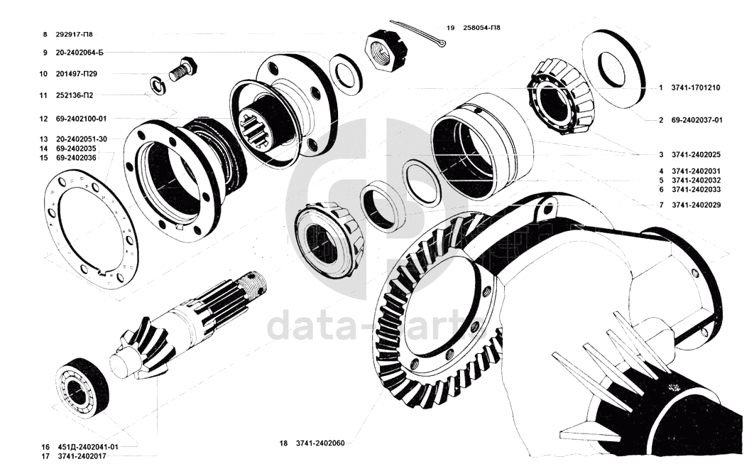Фланец крепления карданного вала и ведущей шестерни в сборе