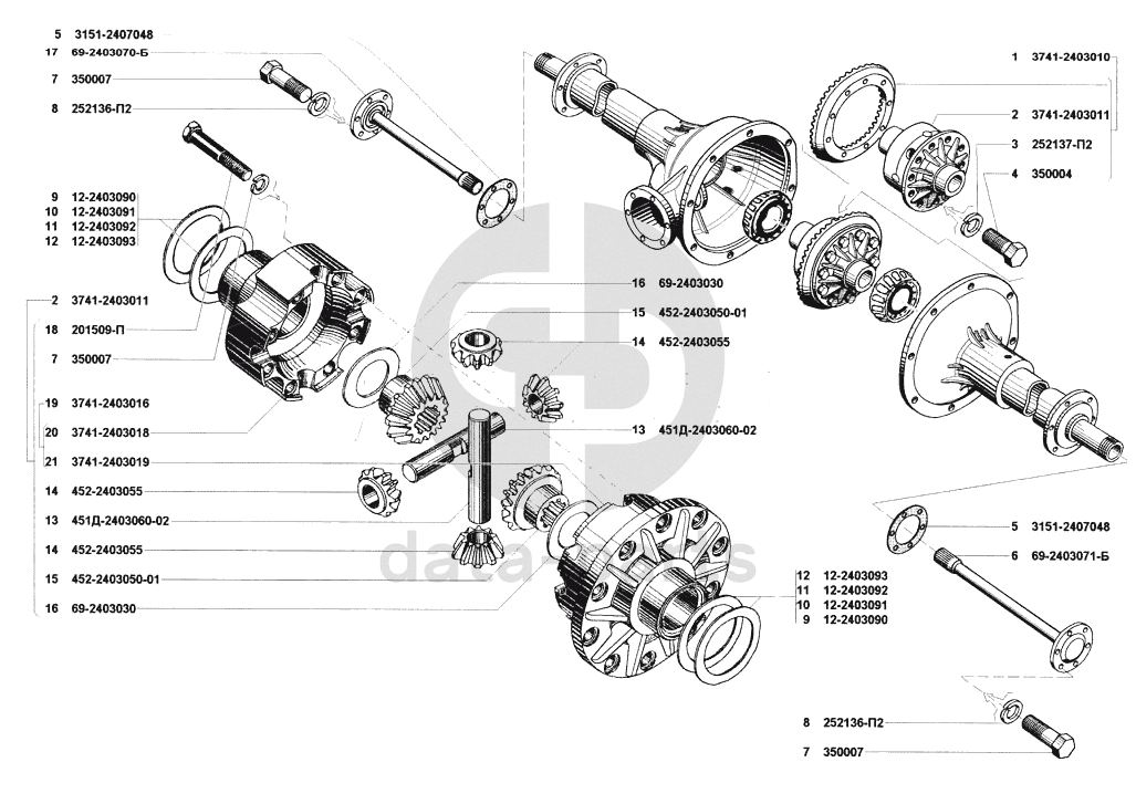 Дифференциал и полуоси заднего моста УАЗ 31512