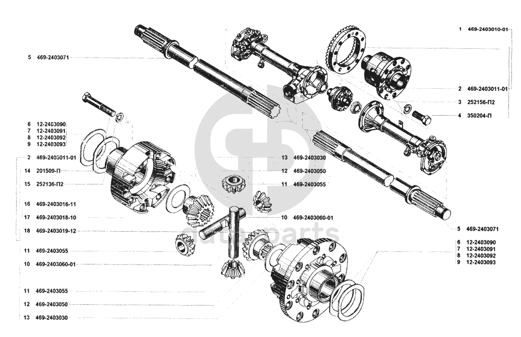 Дифференциал и полуоси заднего моста УАЗ 31512
