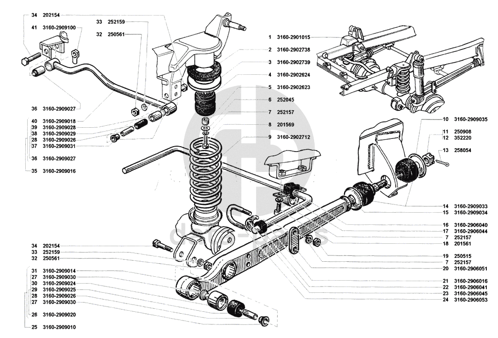 Подвеска передняя в сборе, пружины передние, стабилизатор поперечной устойчивости и штанги реактивные передней подвески УАЗ 31512