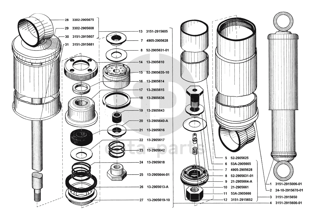 Амортизатор в сборе (возможна установка амортизатора 3151-2905006)