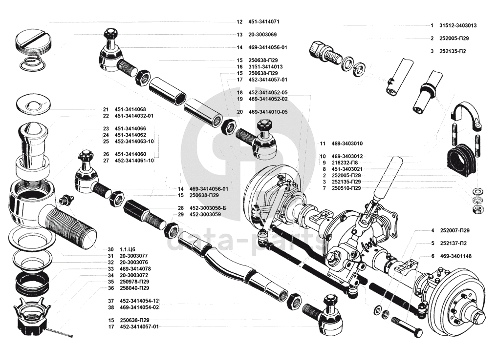 Крепление рулевого управления и тяги рулевые УАЗ 31512