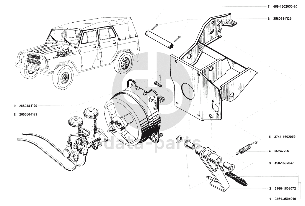 Педаль и привод механизма управления тормозами УАЗ 31512