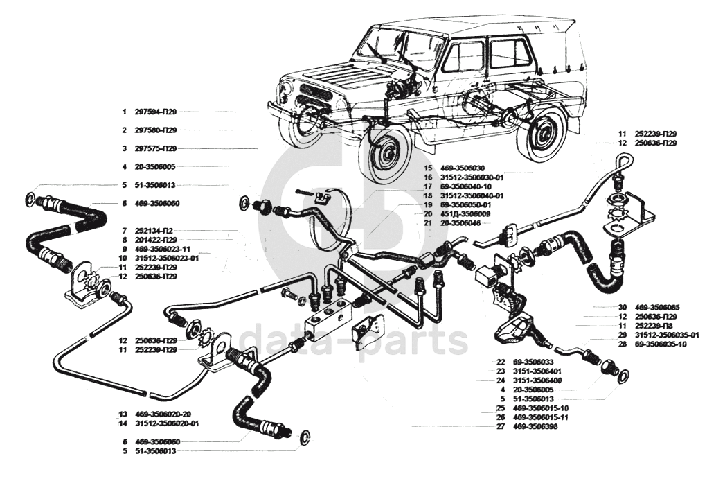 Трубопроводы гидравлических тормозов УАЗ 31512