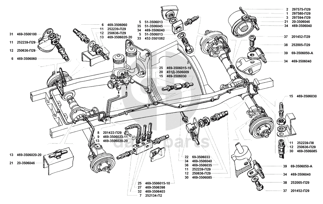 Трубопроводы гидравлических тормозов УАЗ 31512