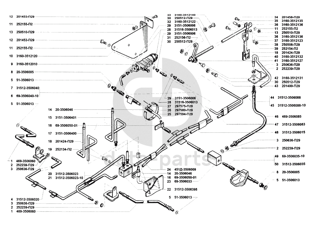 Трубопроводы гидравлических тормозов, регулятор давления УАЗ 31512