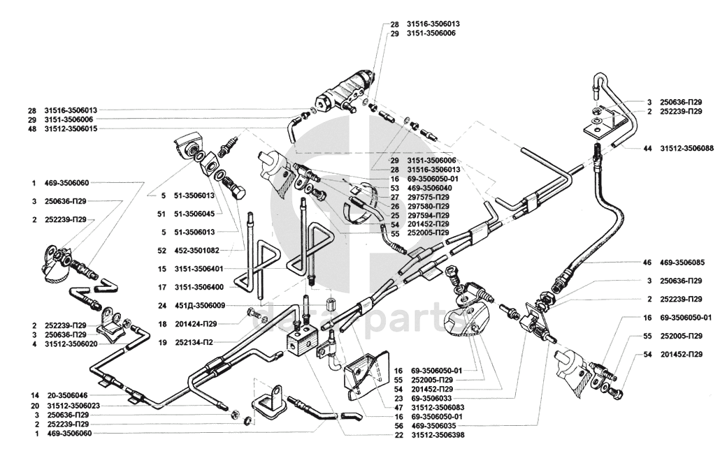 Трубопроводы гидравлических тормозов УАЗ 31512