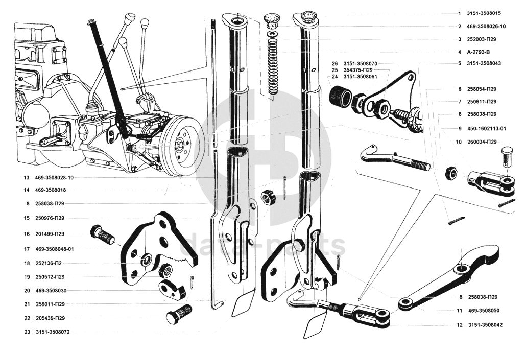 Привод механизма управления стояночным тормозом УАЗ 31512