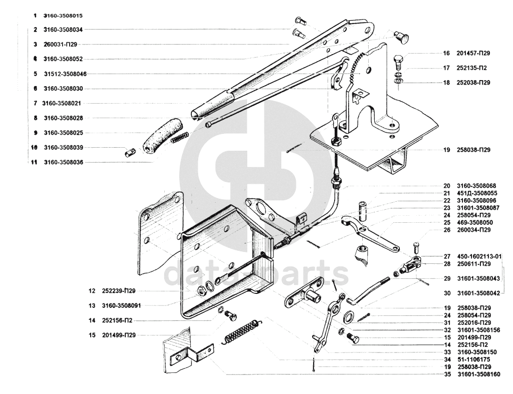 Привод механизма управления стояночным тормозом УАЗ 31512