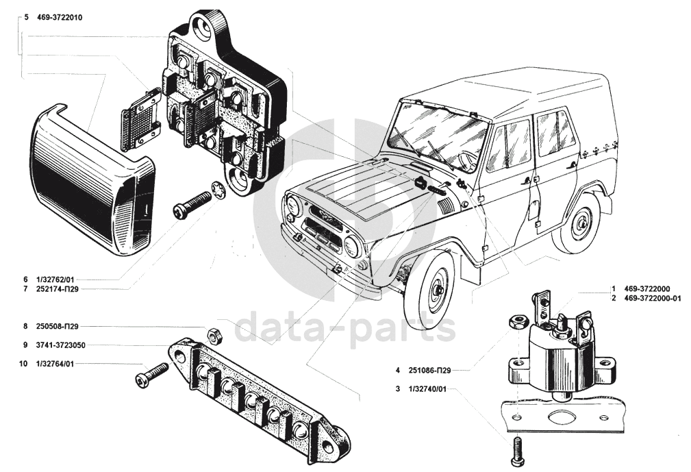 Предохранители электрических цепей и соединители электропроводов УАЗ 31512