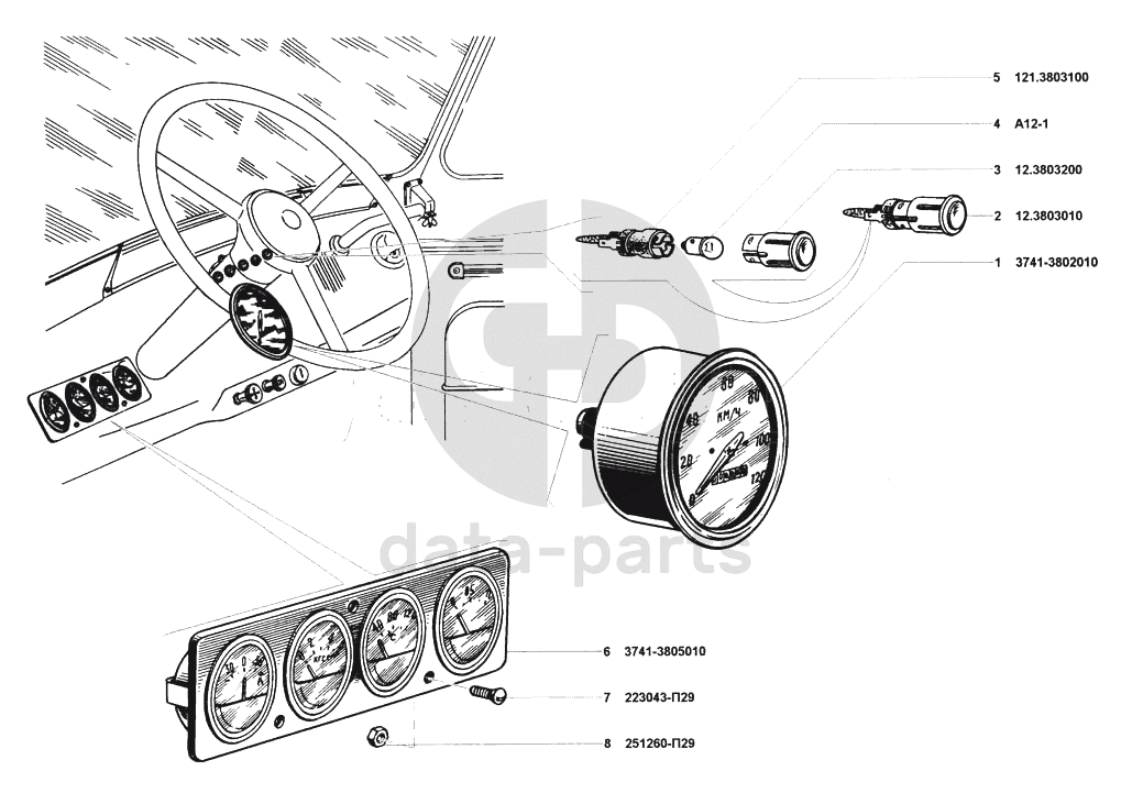 Щиток приборов, спидометр, фонари контрольных ламп УАЗ 31512
