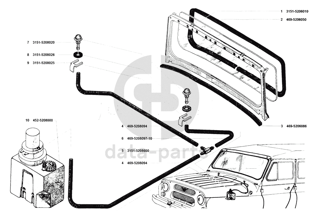 Окно ветровое, смыватель УАЗ 31514