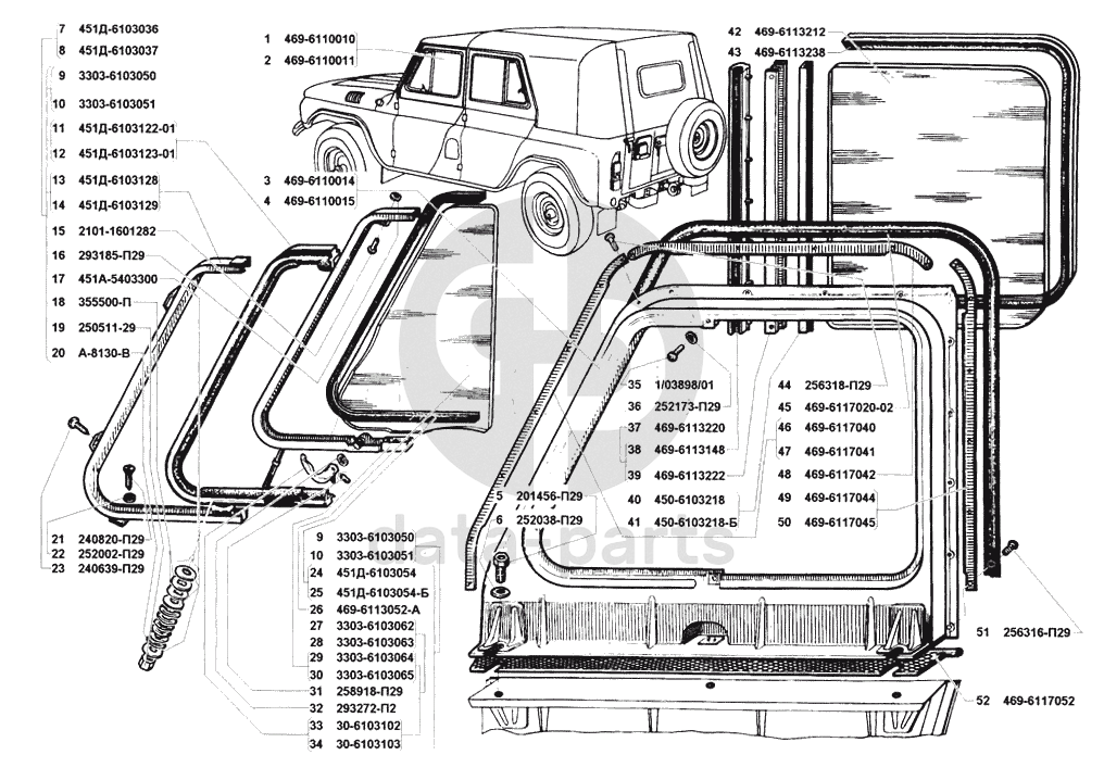 Надставка передней двери в сборе, окно надставки передней двери, уплотнение надставки передней двери УАЗ 31514