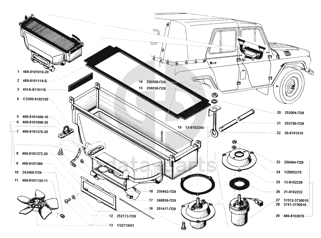 Отопление кузова и трубопроводы УАЗ 31514