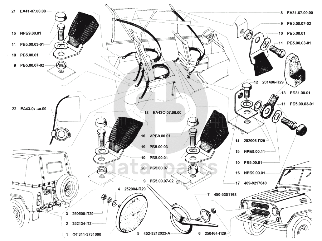 Отражатели света, орнаменты, ремни безопасности УАЗ 31514