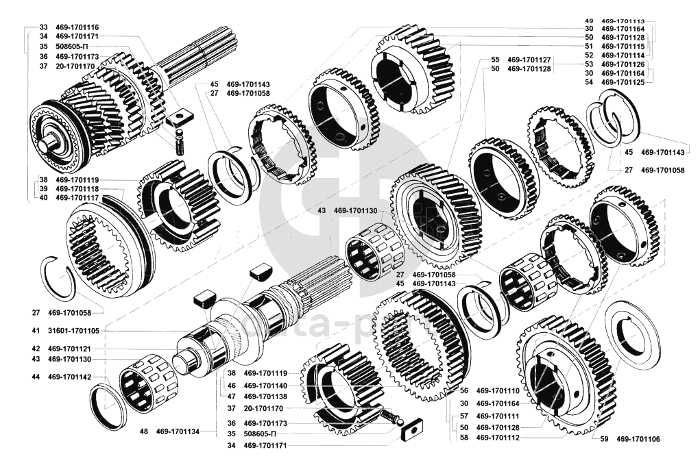 Шестерня 1-й передачи с кольцом синхронизатора в сборе