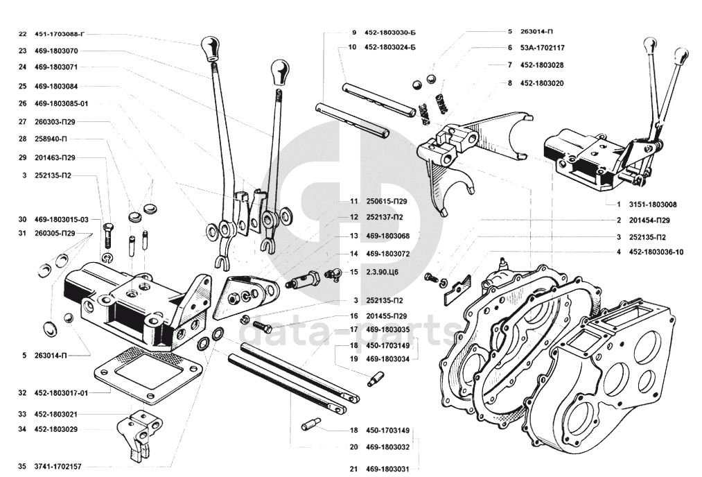 Механизм переключения передач раздаточной коробки УАЗ 31514