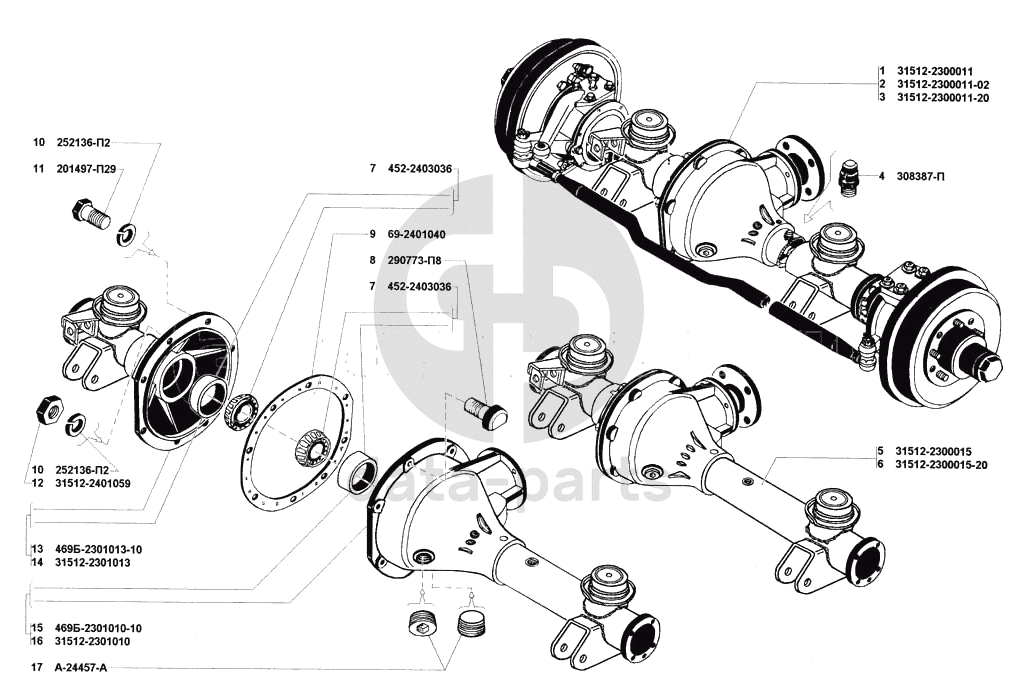 Мост передний ведущий в сборе, картер и кожухи полуосей переднего моста УАЗ 31514