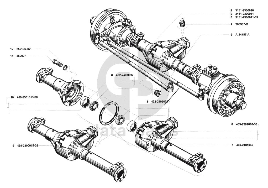 Мост передний ведущий в сборе, картер и кожухи полуосей переднего моста УАЗ 31514