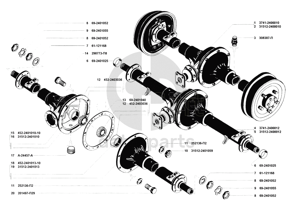Мост задний ведущий в сборе, картер и кожухи полуосей заднего моста УАЗ 31514