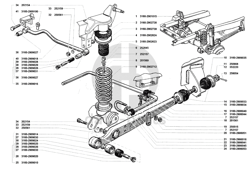 Подвеска передняя в сборе, пружины передние, стабилизатор поперечной устойчивости и штанги реактивные передней подвески УАЗ 31514