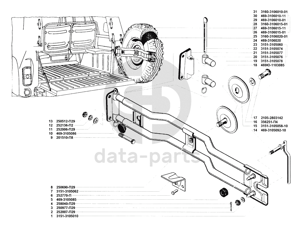 Держатель запасного колеса, покрышки и камеры УАЗ 31514