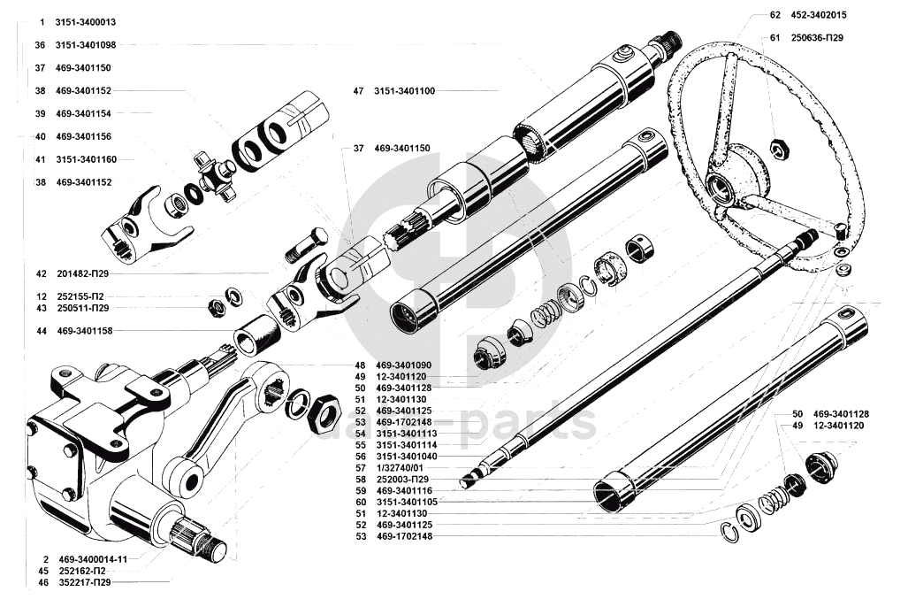 Управление рулевое в сборе, управление рулевое и колесо рулевого управления УАЗ 31514
