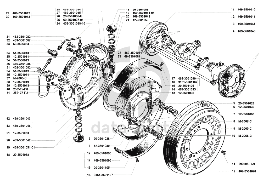 Тормоза рабочие передние и тормозные барабаны УАЗ 31514