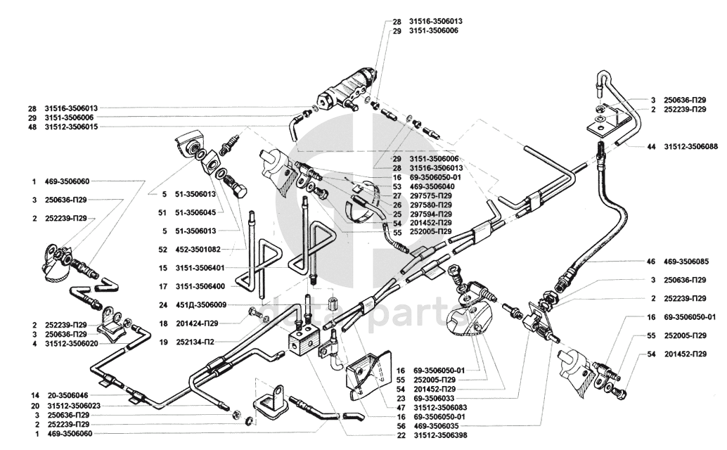 Трубопроводы гидравлических тормозов УАЗ 31514